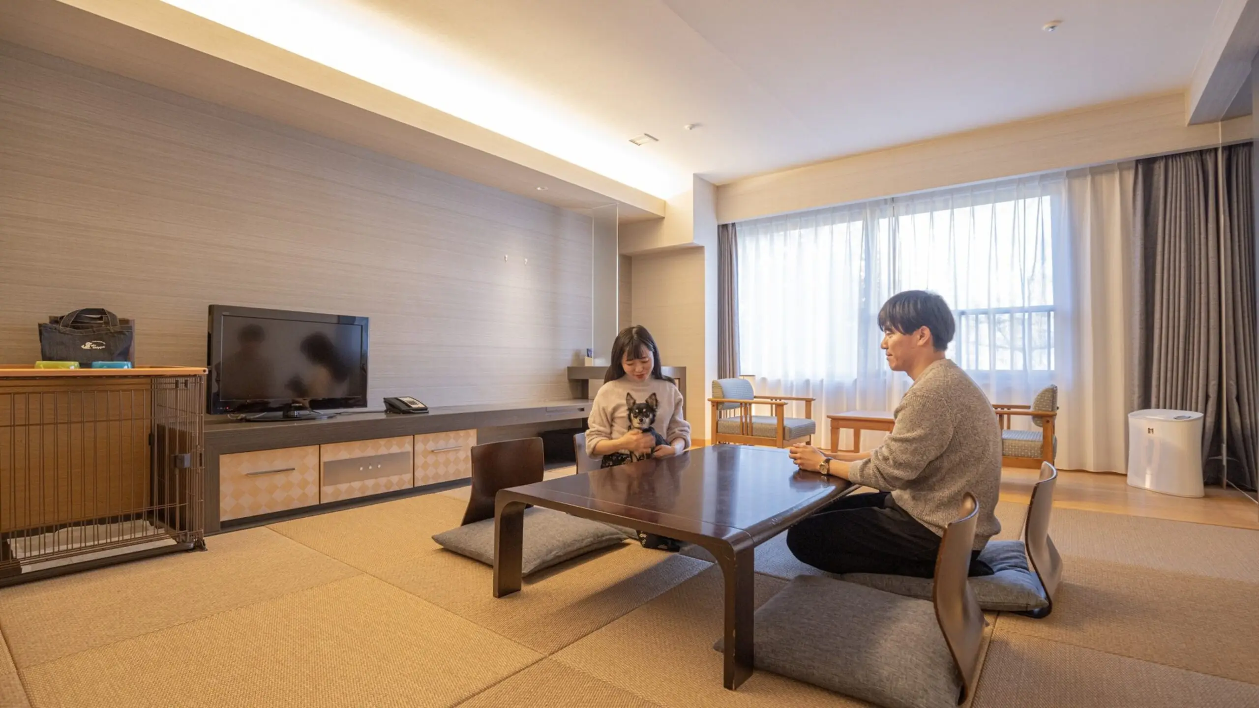 山中湖の豊かな森に包まれ、富士山を望む格式ばらないホテル。 温泉大浴場やテニスコート、こだわりの料理を堪能するレストランなど、多彩なリゾート施設が心地よいくつろぎの時を演出いたします。 和の趣がある落ち着いた空間の「ドッグフレンドリールーム」で、愛犬と一緒に上質な休日をお楽しみください。