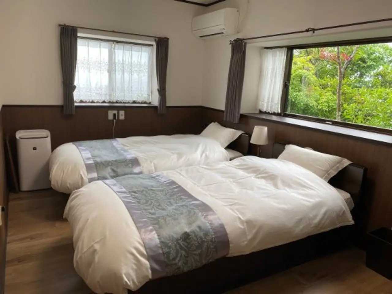 高台に建つ2階建て貸別荘。 アロマが楽しめるセルフロウリュサウナがあり、テラスではBBQも楽しめます。 広いリビングと開放的なオープンキッチンを備え、持込食材のお料理も可能です。 別荘地内にドッグランあり。