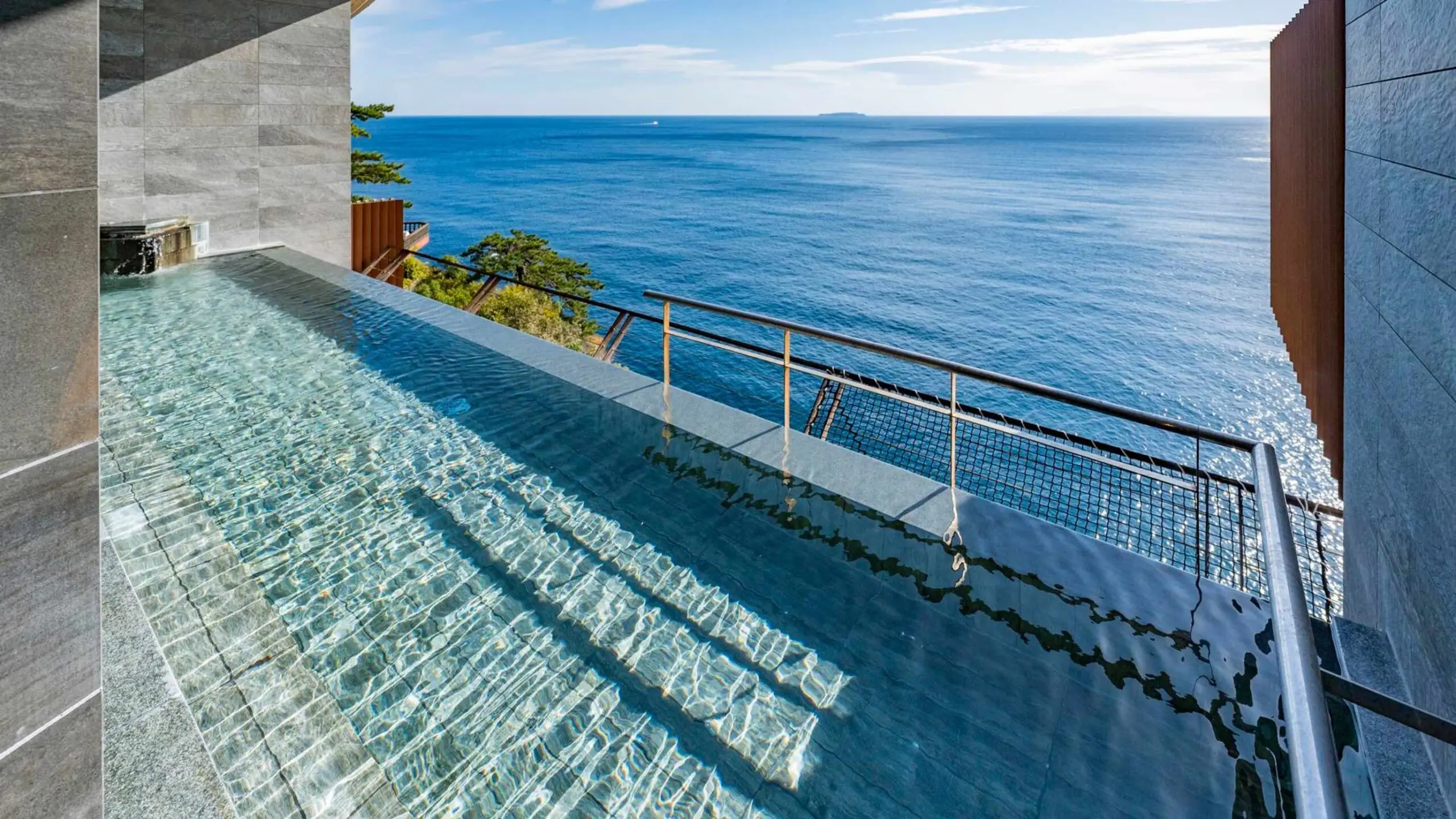 南熱海にある1棟貸し切りのプライベートハウス。全室からオーシャンフロントの絶景をお楽しみいただけます。温泉は源泉かけ流しの天然温泉で、湯船に浸かりながら海を眺めることができます。スカイテラスを新設し、2020年春にリニューアルオープンしました。中型犬2頭まで宿泊可能。