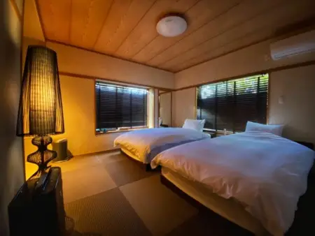 熱海市自然郷にある1日1組限の一棟貸切りヴィラです。 119㎡、4LDKの室内と広いお庭があります。 自然に囲まれたデッキテラスでBBQをお楽しみください。 階段をおりると広々としたドッグランになっているので愛犬と楽しむことができます。 お風呂は温泉ですのでゆったりとお過ごしください。 わんちゃんは頭数制限なし、大型犬まで宿泊可能です。