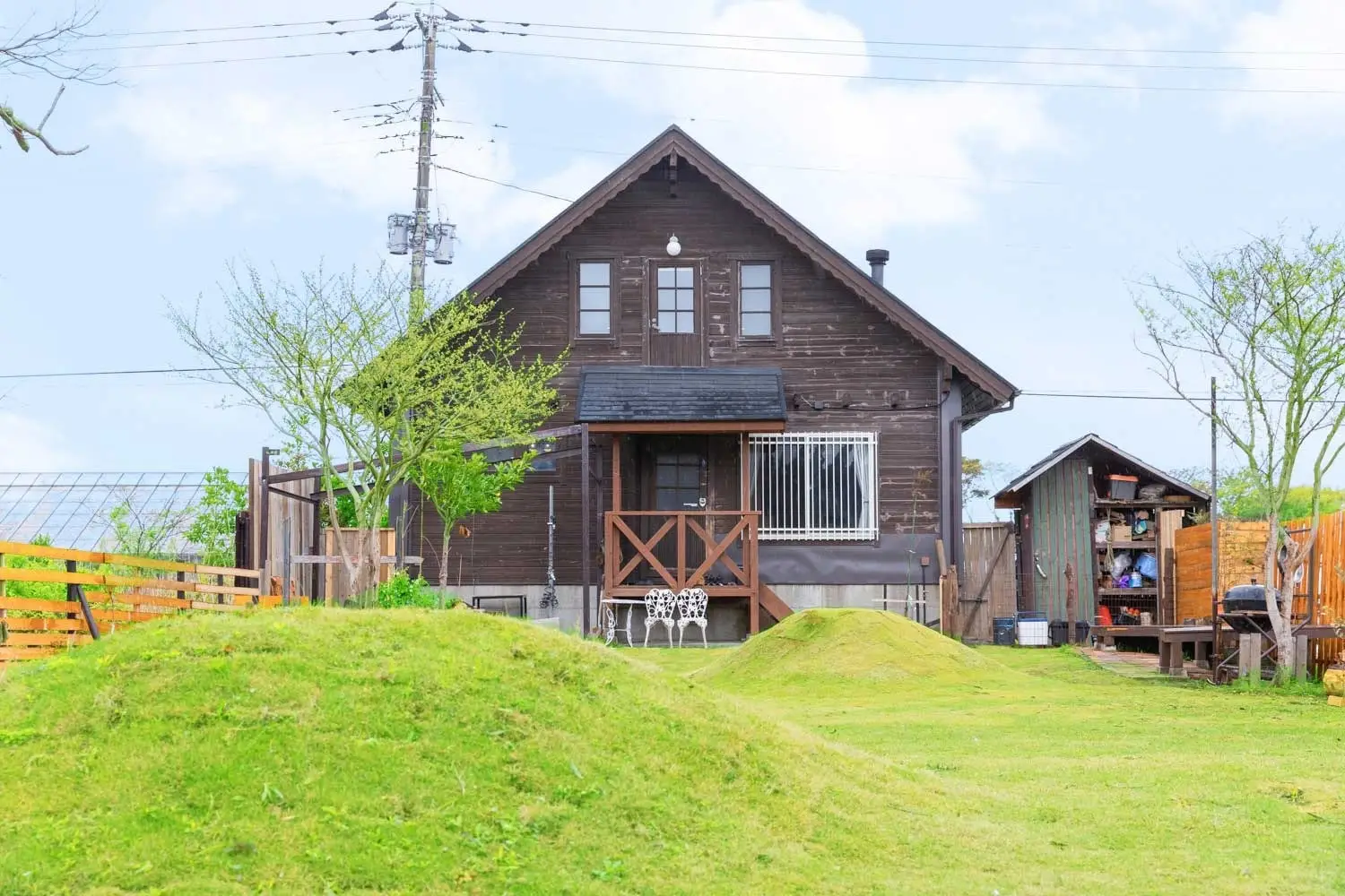杉木立が美しい山々と田園風景が広がる山武市松尾町の「杉之家」。<br> 居間に面して広がる庭は、広大なドッグランとして利用できます。<br> 囲炉裏テーブルを囲んでのお食事が楽しめるダイニングスペ...
