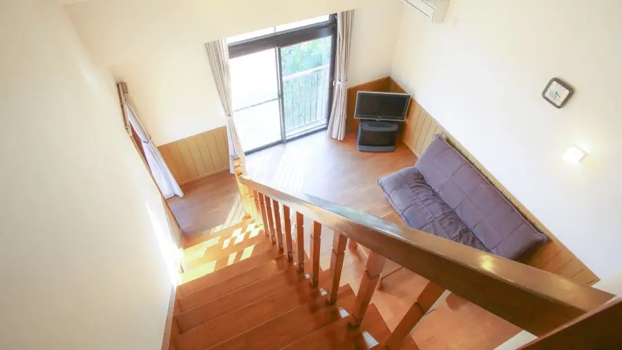 自然木をふんだんに使用して建てられたコテージです。冷暖房や料理器具、洗濯乾燥機がついています。30kg以下の中型犬まで宿泊可能です。
