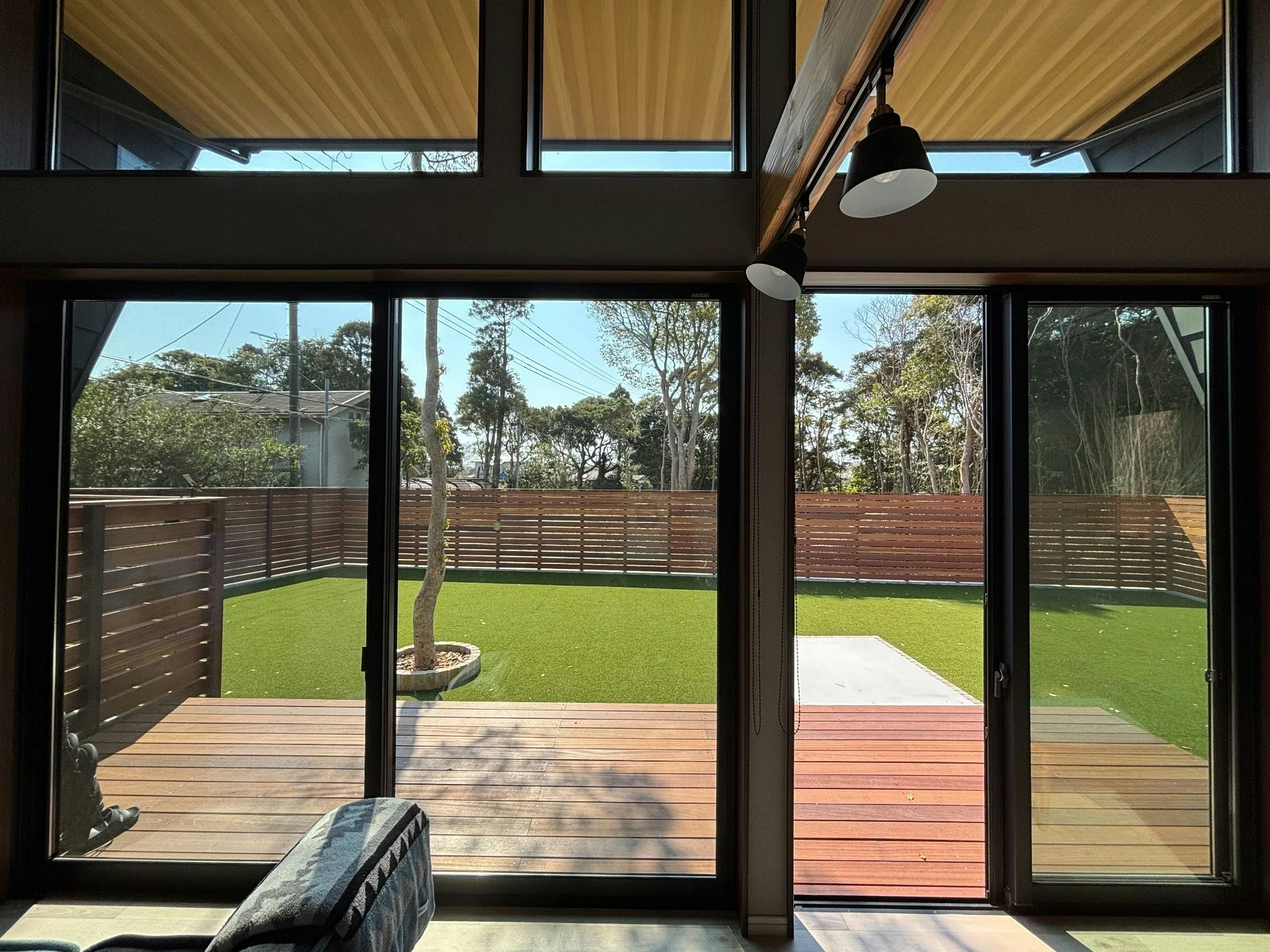 犬の足に優しい人工芝の専用ドッグランにもなるお庭