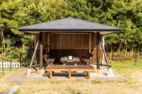 雨天時でもご利用可能な本格BBQグリルとベンチをご用意しております。