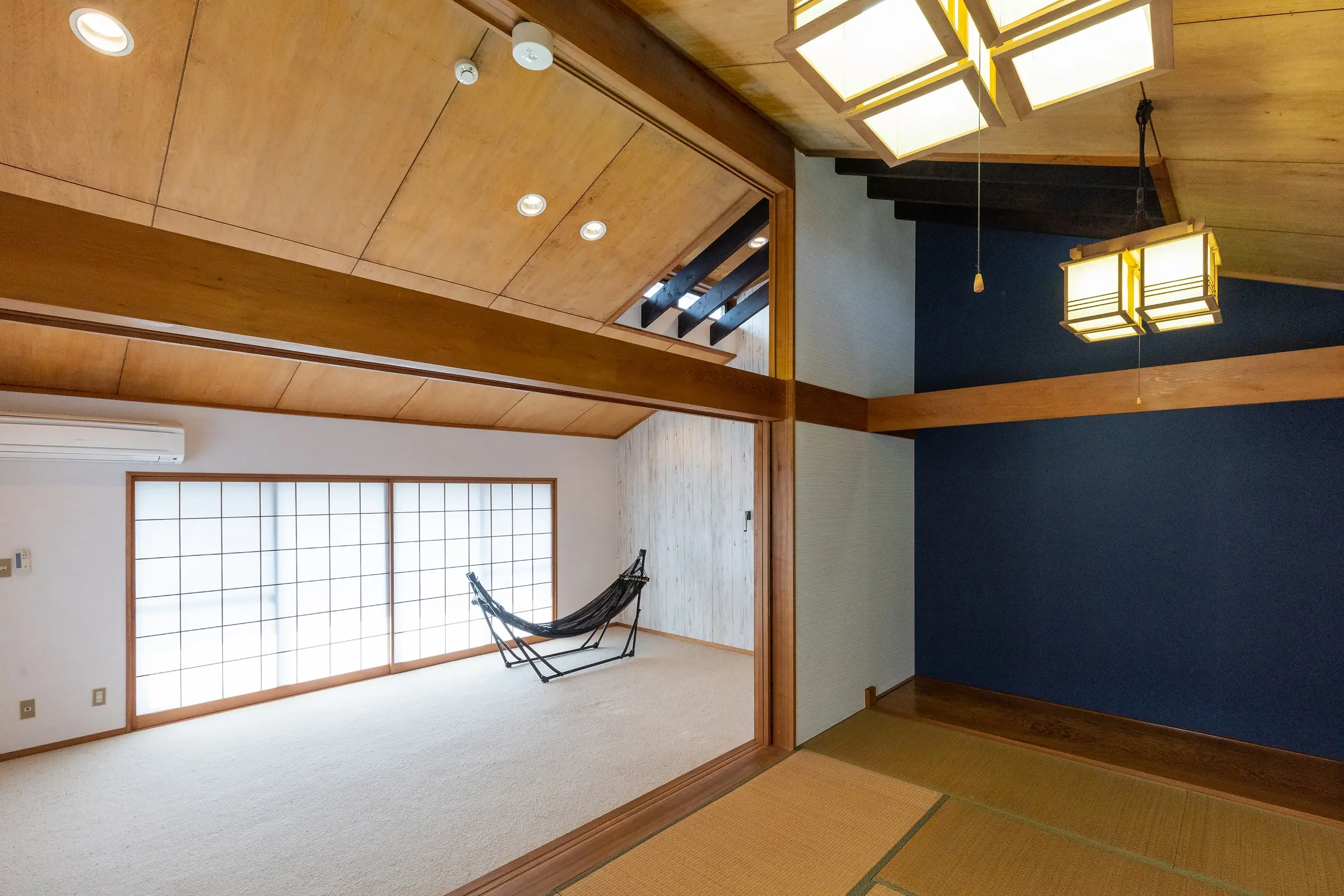 2022年8月オープン。千葉県富津市八幡にある新舞子海水浴場より約850mの距離にある貸別荘。内装は大きな堀りごたつ式のテーブルがある落ち着いた古民家風空間で、広い天然芝の庭では愛犬や子供が駆け遊ぶ横で本格BBQを楽しむことも可能。ペット連れのご家庭や複数世帯のご旅行でも満足できること間違いなしです。大型犬まで宿泊可能。