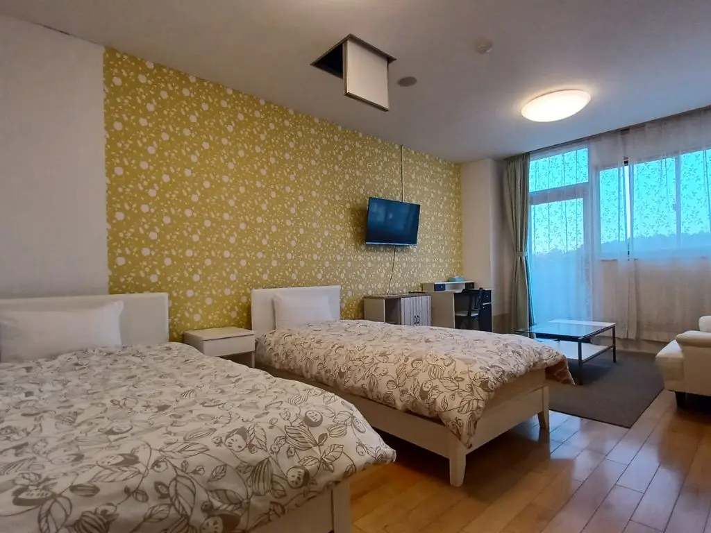 ワンちゃんと泊まれるのはツインルームまたはコンドミニアムタイプです。大浴場(人工温泉)、プレイプレイランド、屋外プール、BBQスペース等、館内施設が充実しています。屋内ドッグラン(小スペース)、屋外ドッグランがあり、屋外は照明付きで夜間も利用できます。ドッグアメニティ付き。大型犬まで宿泊可能。
