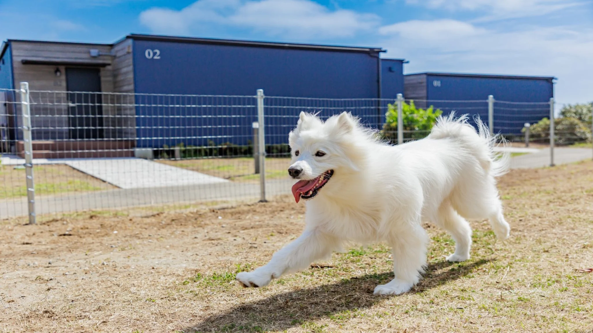 専用のプライベートドッグランも備えており、のびのびと楽しめます。
