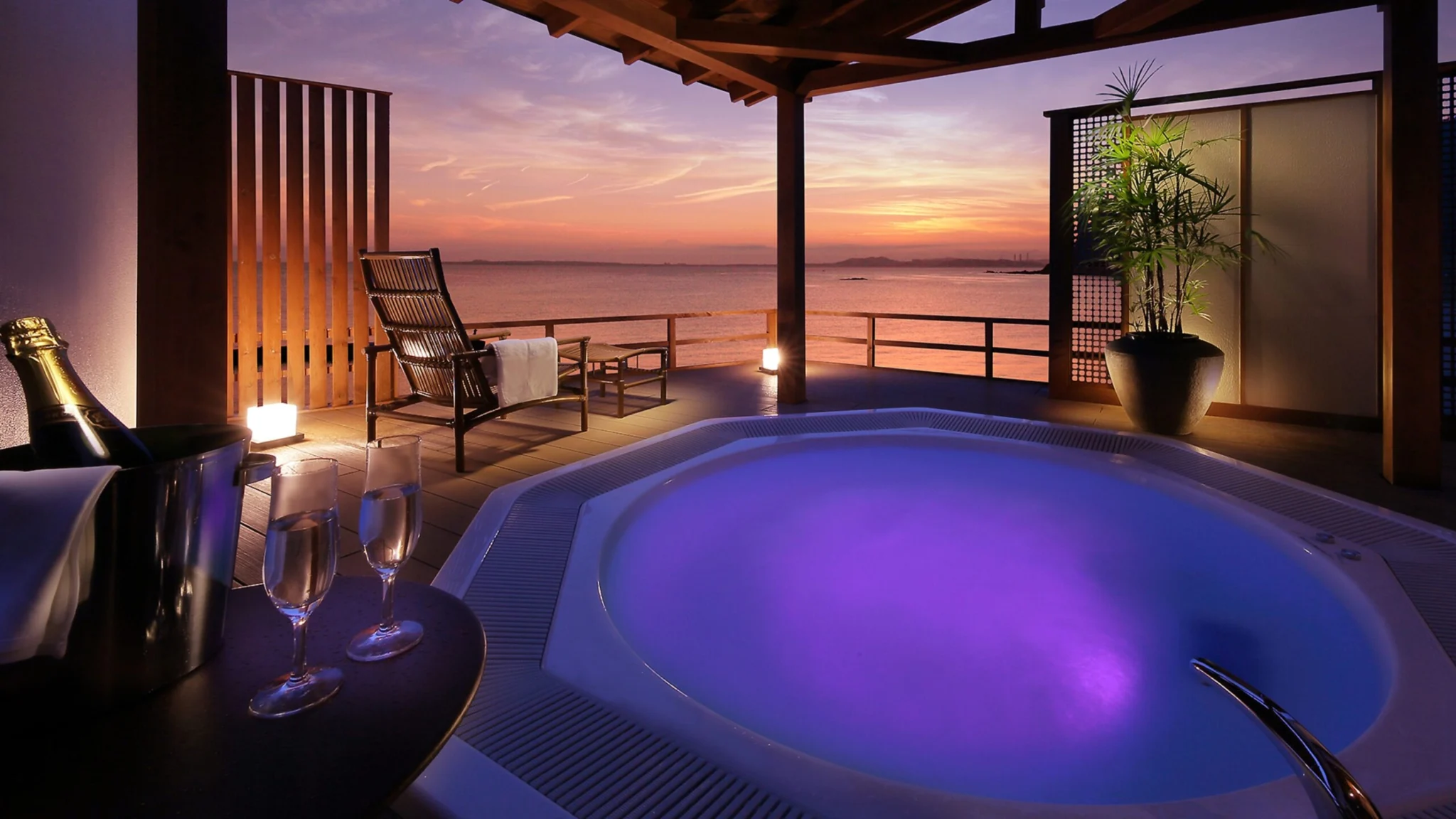 ゆうみ「海」:自転車で5分ほどの、「ゆうみ」の天然温泉有料貸切露天風呂『海』をご利用いただけます。(チェックイン時に要予約)