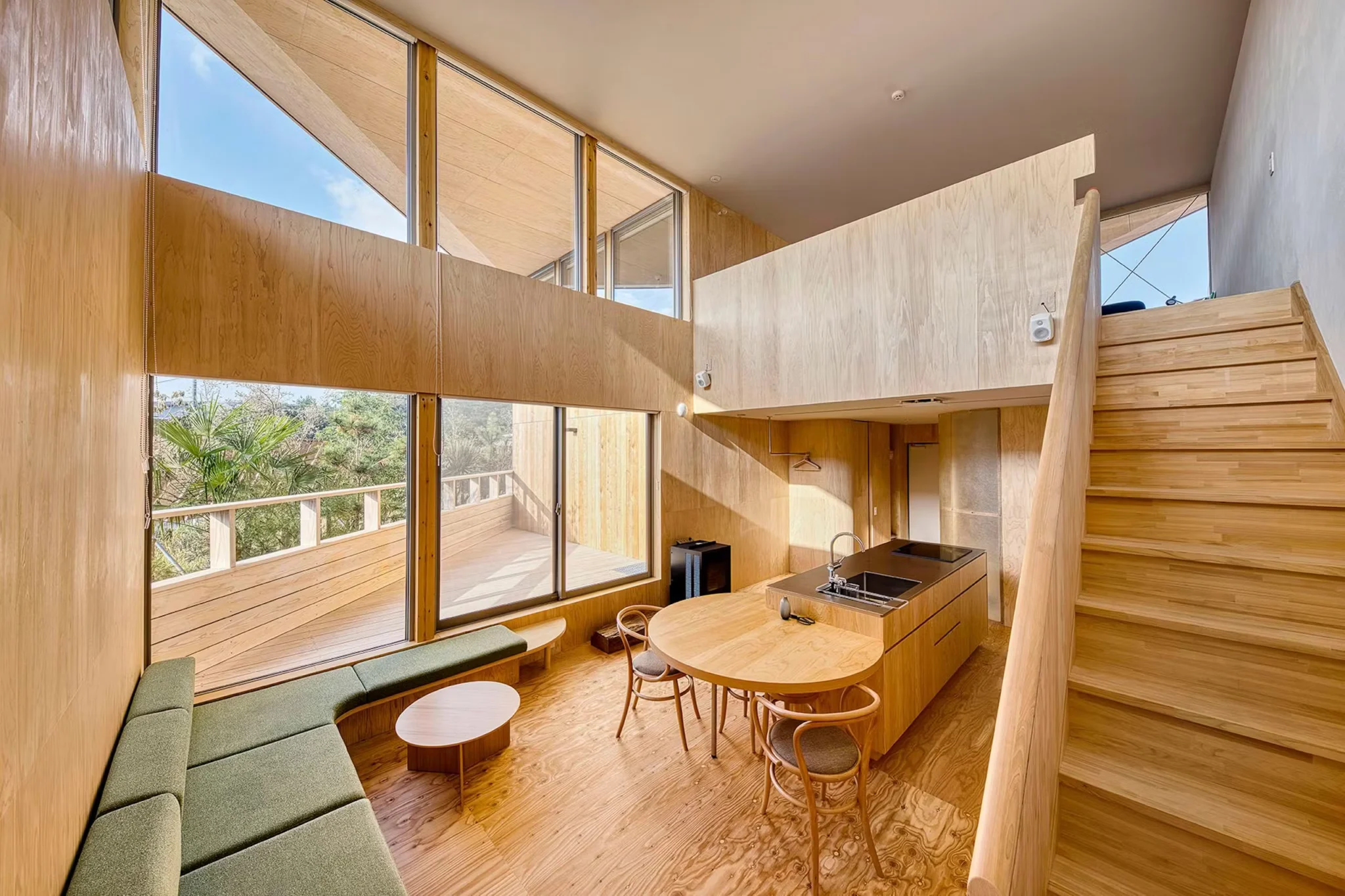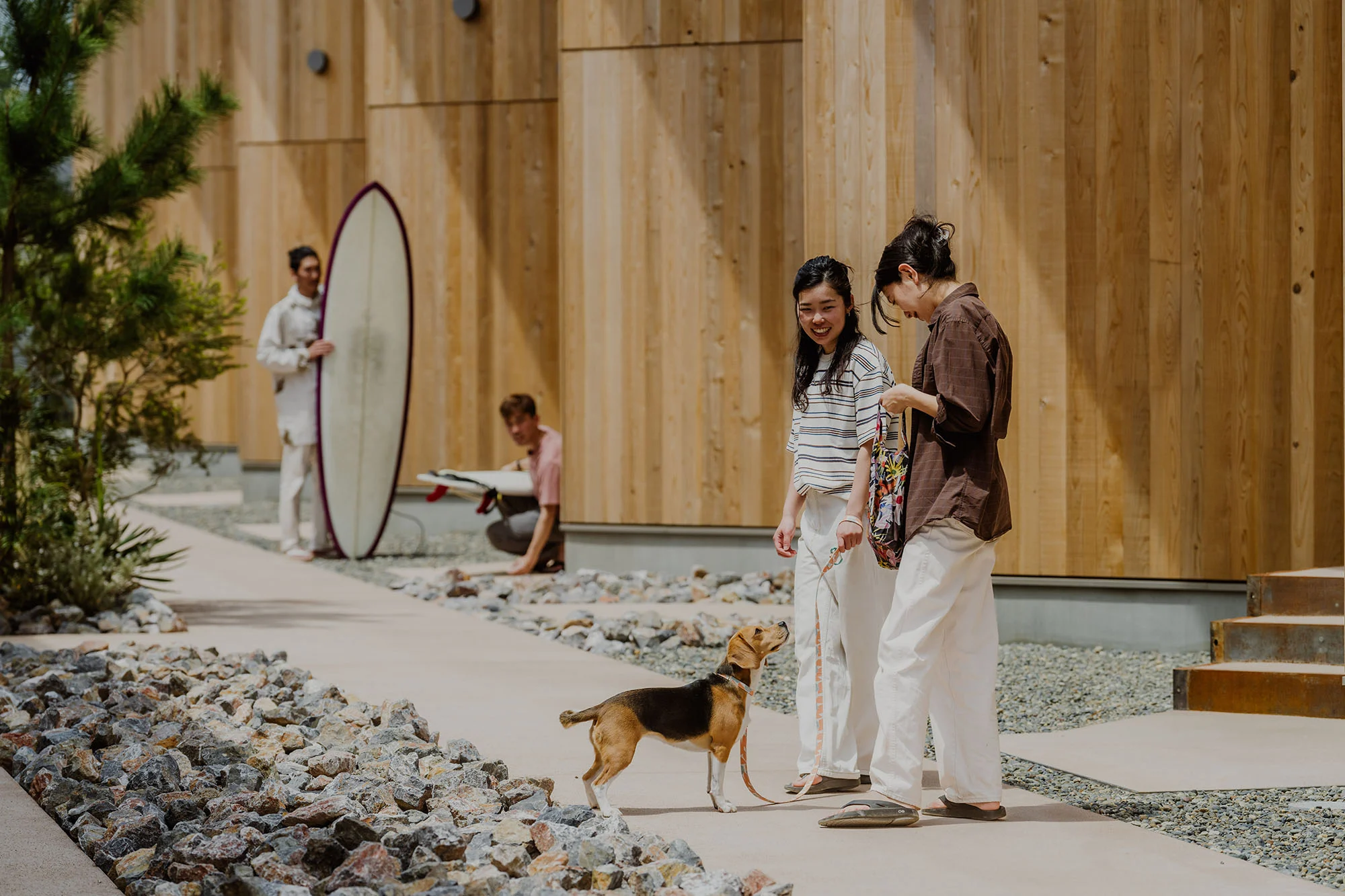 九十九里浜の最南端に位置する拠点であり、初級者から上級者まで楽しめるサーフィンの聖地。SUPやビーチヨガなどのアクティビティも充実しています。リビングとベッドスペースがフロアで仕切られたメゾネットタイプの建築で、広々とした居住空間が広がります。愛犬とともに海辺を散策したり、コーヒースタンドで一息ついたり、ゆったりとした時間をお過ごしください。