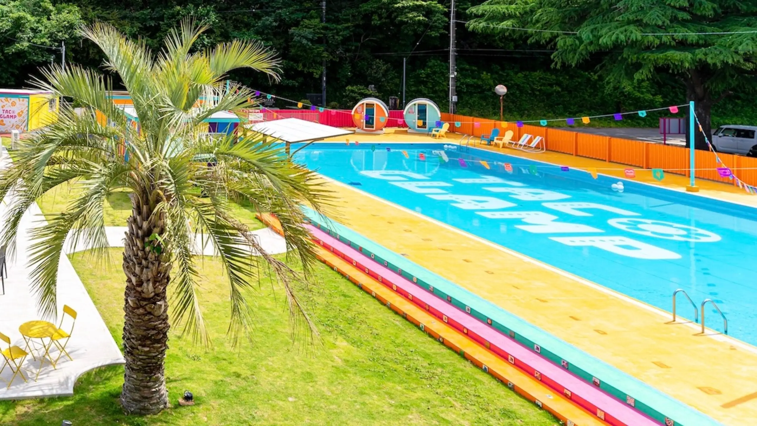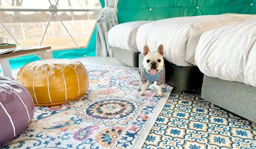 東京都内からのアクセスも良く、ワンちゃんとの気軽に休日を過ごす場所として愛犬家に人気のエリア千葉。その北東部、多古町にある旧小学校をリノベーションしたグランピング施設です。目にも鮮やかなメキシカンカラーは、到着した瞬間から愛犬の写真をあちらこちらで撮りたくなること間違いなし!また、元小学校ならではの楽しいアクティビティがあり、夏季にはプール、またプールサイドテラスにはバレルサウナも。愛犬との宿泊はドームテントまたはキャンピングトレーラーの2タイプでご利用頂けます。