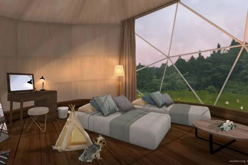 ペット専用テントでは12kg以下の中型犬2頭まで宿泊可能。
