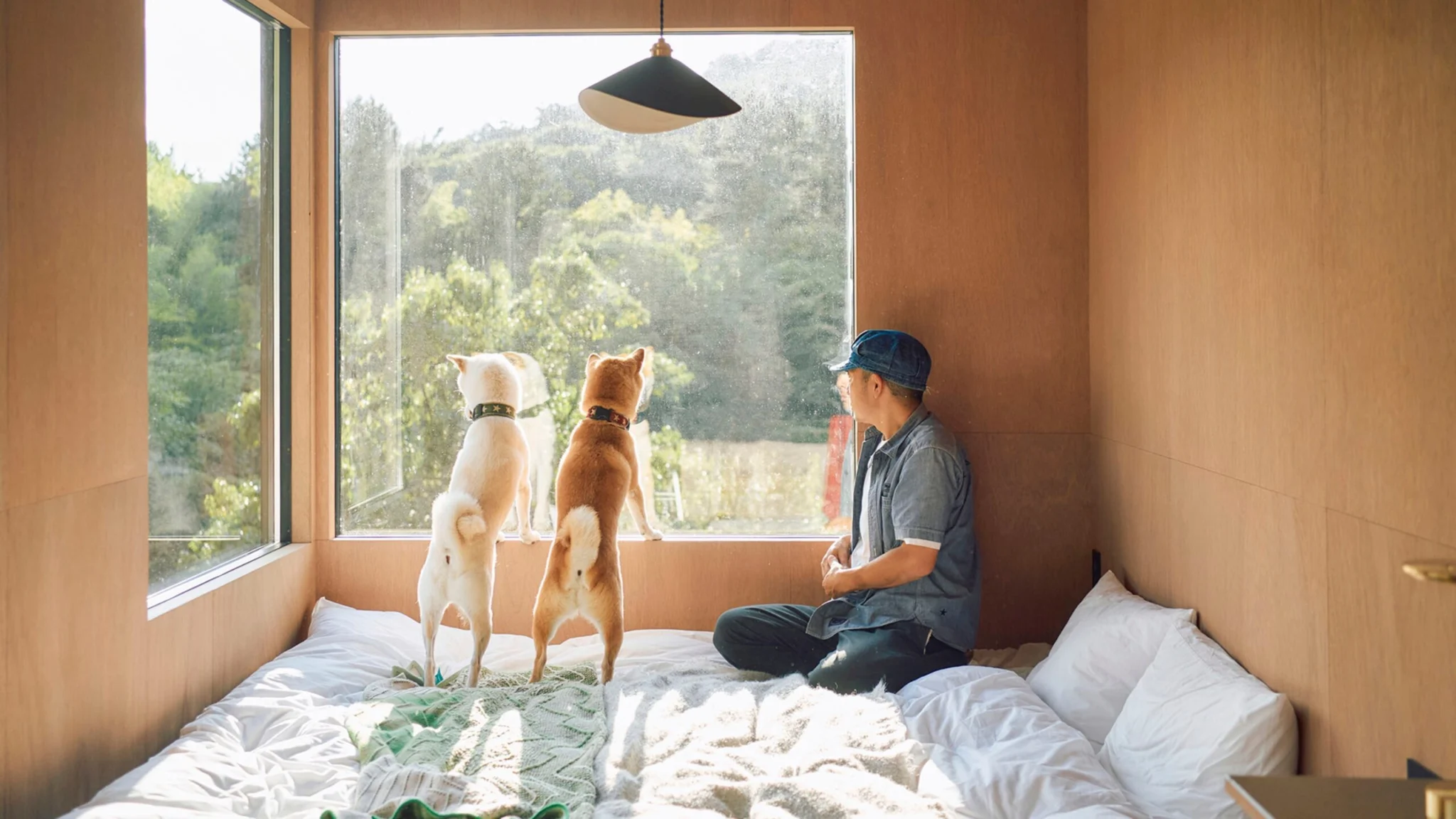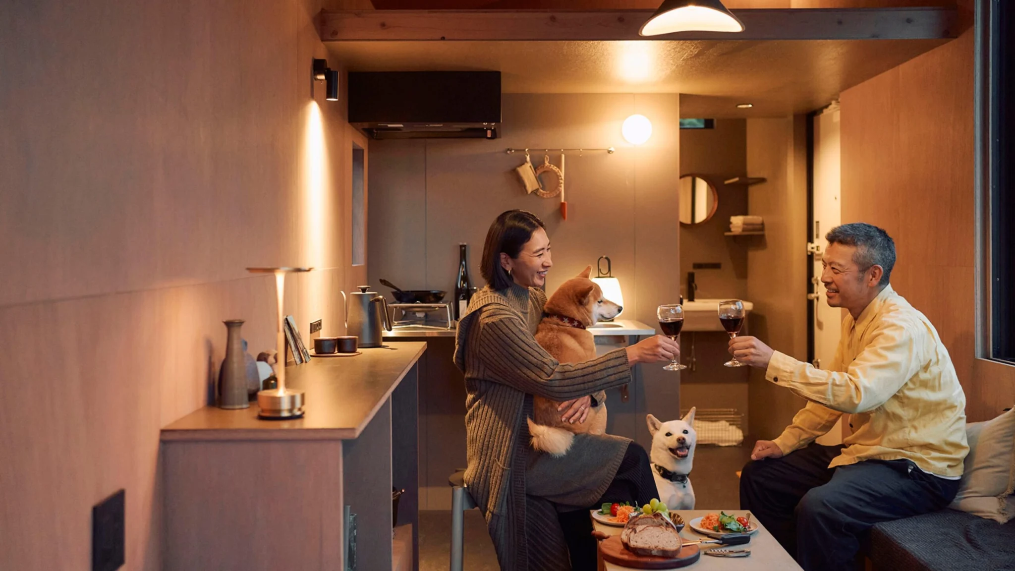 90㎡のプライベートドッグラン付き、 大きな窓や開放的な間取りを備えた「MIGRA(3名用)」と、デスクや広々としたキッチンが魅力の「ROADIE(4名用)」の2タイプをご用意。小さく心地よい空間で、ワーケーションにも最適です。