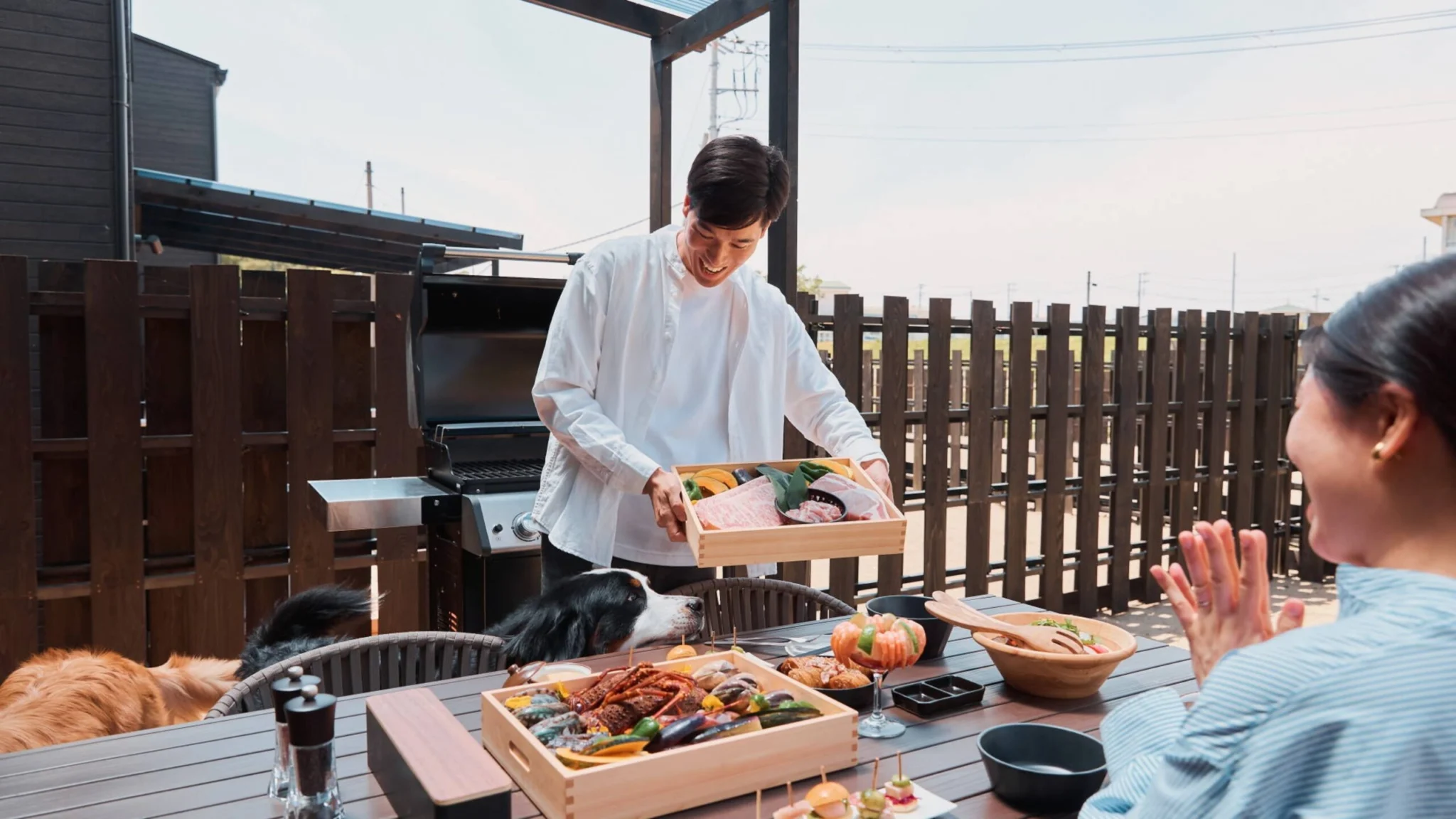 夕食は客室内のデッキにて茨城の旬の食材を楽しむBBQでのご案内。