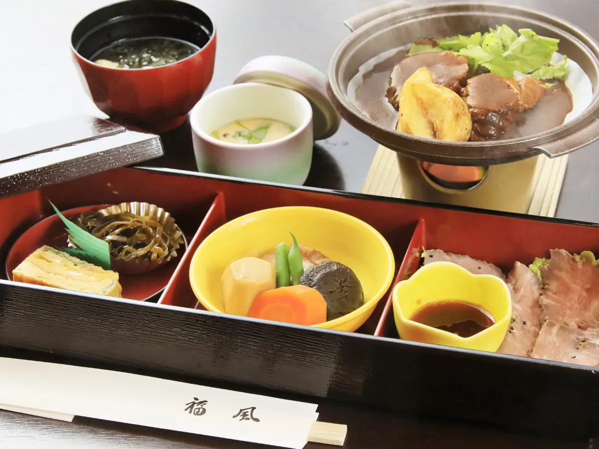 ご夕食、ご朝食ともにケータリングをご用意しております。箱根仙石原で人気の日本料理屋「福風」さんの自家製御膳などを、わんちゃんと一緒にお部屋でゆっくりお楽しみいただけます。