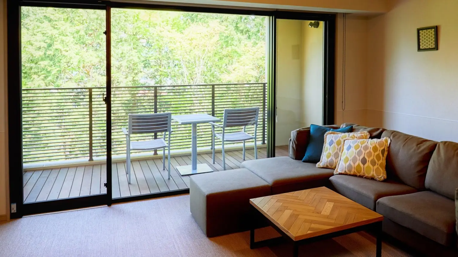 1階の客室はテラスから直接出られるプライベートドッグランを併設しております。