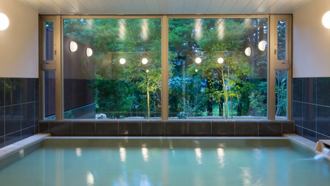 大涌谷から引湯した白濁の温泉大浴場。 気兼ねなく愛犬との時間を過ごすお部屋食と静寂の森。 四季折々の表情を織りなす景観が楽しめ、春の新緑、秋のススキや紅葉、季節ごとに表情を変える豊かな自然を体感。 愛犬と一緒に旅行したことがない方でも安心して過ごせるよう室内ドッグランを中心として愛犬への細かな配慮や工夫を随所に施しております。 また、窓越しに広がる緑を眺めながら、ご夕食・ご朝食を愛犬と一緒にお部屋にてご用意しておりますので 気兼ねすることなくプライベートな空間で快適にお過ごしいただけます。