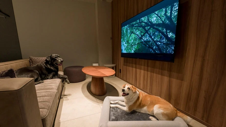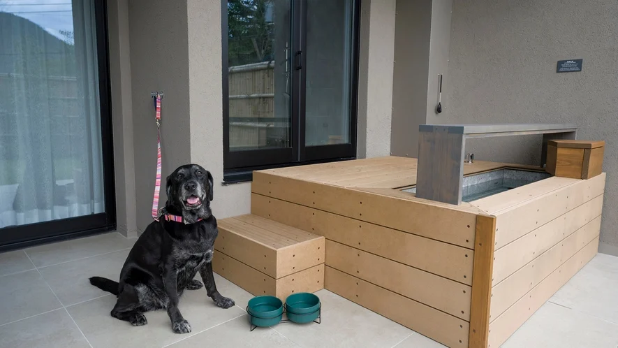 客室は52㎡~170㎡と広々とした間取りで、全室に天然温泉かけ流し風呂、サウナ、カウンター付き温泉足湯を完備し、プロジェクターで迫力ある映像鑑賞もお楽しみいただけます。また、わんちゃんと一緒に宿泊できるドッグフレンドリールームをご用意。周囲を気にせずわんちゃんと一緒にリラックスしてお過ごしいただけます。