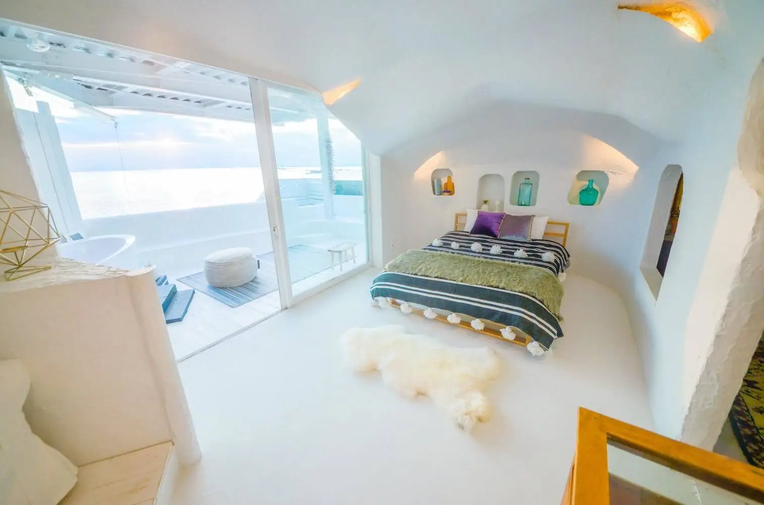 葉山でも屈指の水の透明度を誇る、真名瀬のビーチに立つ3階建ての邸宅は、ギリシャ・サントリーニ島にあるような建物を思わせる外観です。