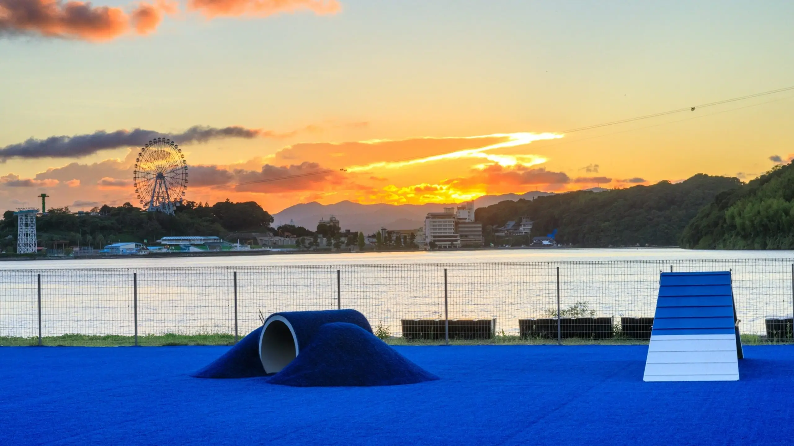 また浜名湖の畔に位置する「わんわんパラダイス 浜名湖」の屋外ドッグランを「dog park~夕凪~」と改め全面リニューアルも済ませ、広々としたブルーの人工芝はまるで湖の上を駆け回っているかのような解放感を演出。お食事処も愛犬の同伴が可能でワンちゃん専用メニューも豊富です。