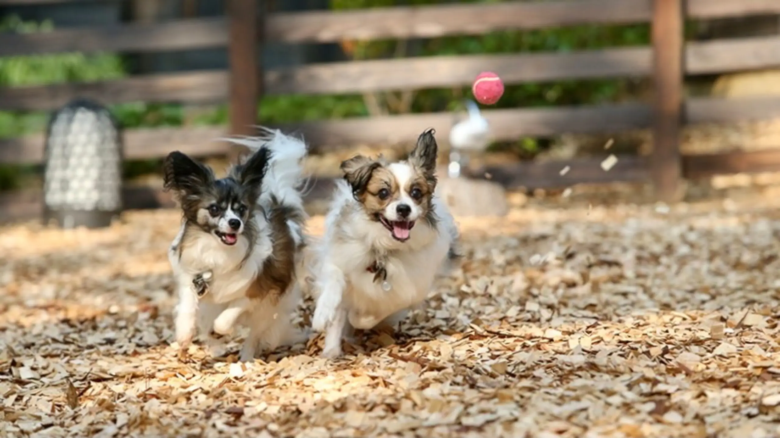 天気の良い日は、ウッドチップを敷き詰めた屋外ドッグランで思いきり走ってお楽しみ頂けます。