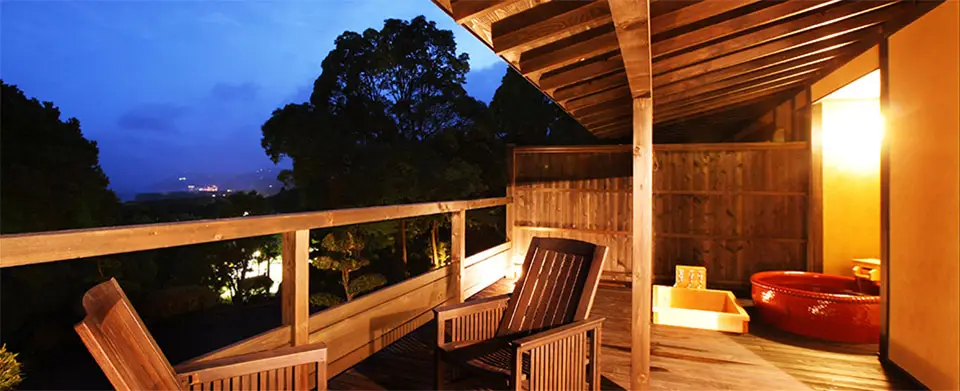 天然温泉の露天風呂を備えた純和室の離れで、ゆったりくつろぎの休日をお過ごしいただけます。