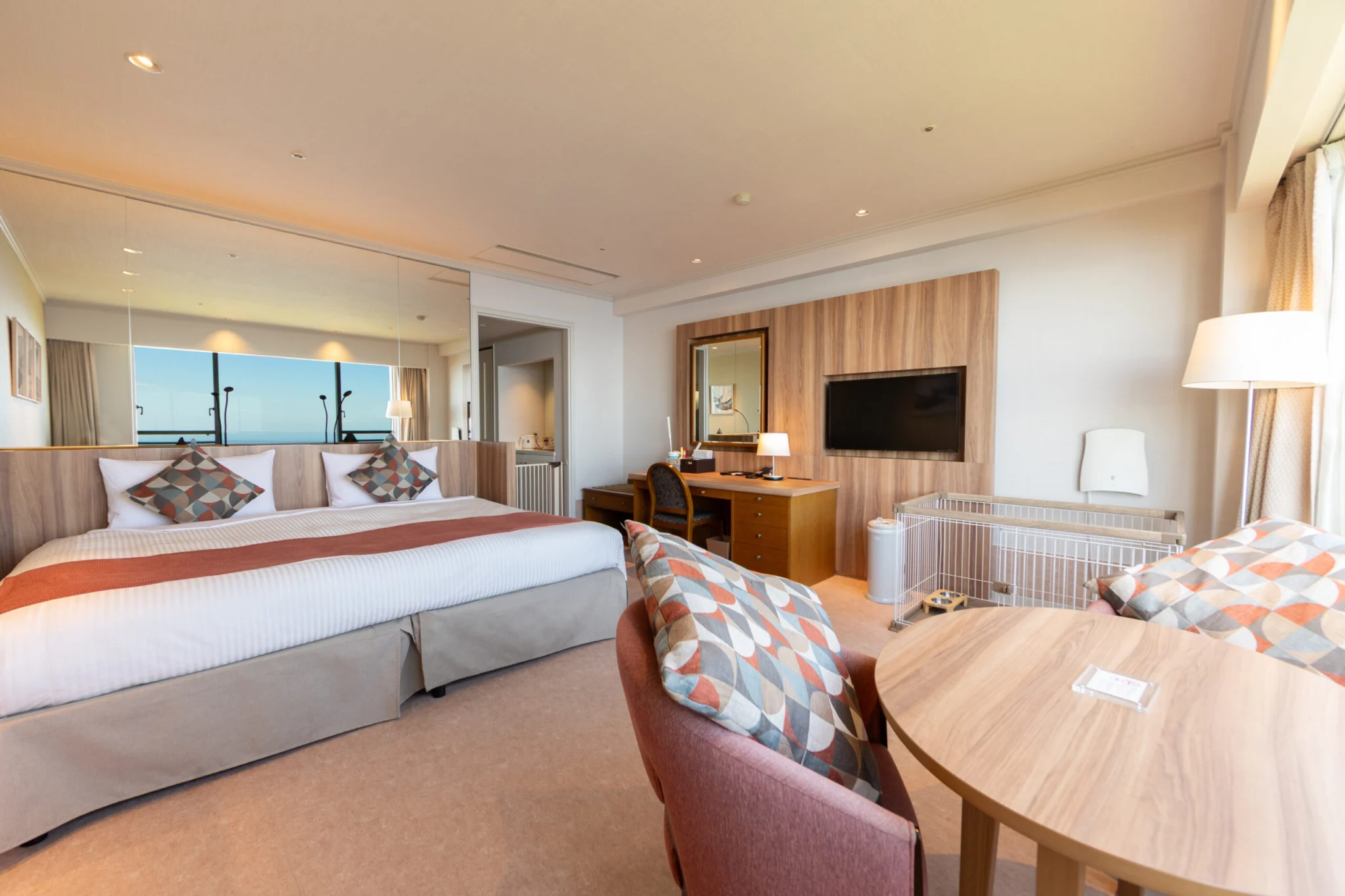 海洋上に聳える「オーシャン・ウイング」は、純白の外壁が眩しい、活気ある本物の昭和が息づく高層ホテル。
