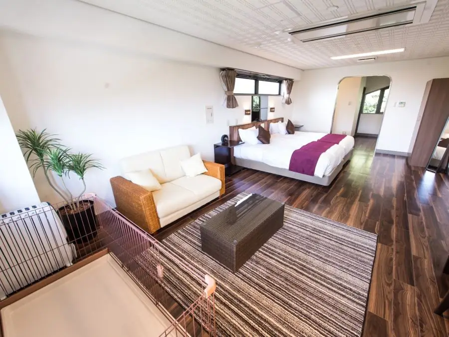 ドッグアメニティあり。10kg未満の小型犬2頭まで宿泊可能、ペット料金は2頭目のみ3,000円です。