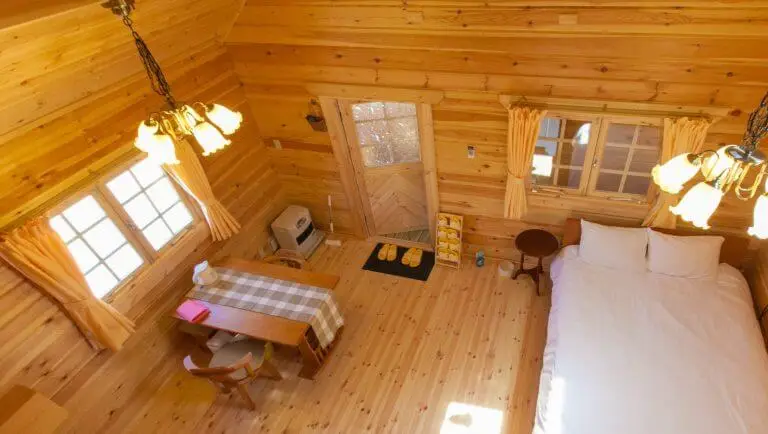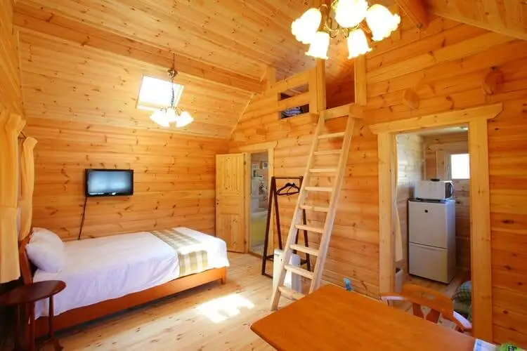 ロフト付のログハウスは生活に便利な設備も充実。