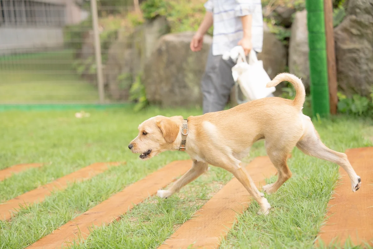 広々とした芝生の中、ワンちゃんは思いきり走り回り、旅の緊張も一気にリラックス。