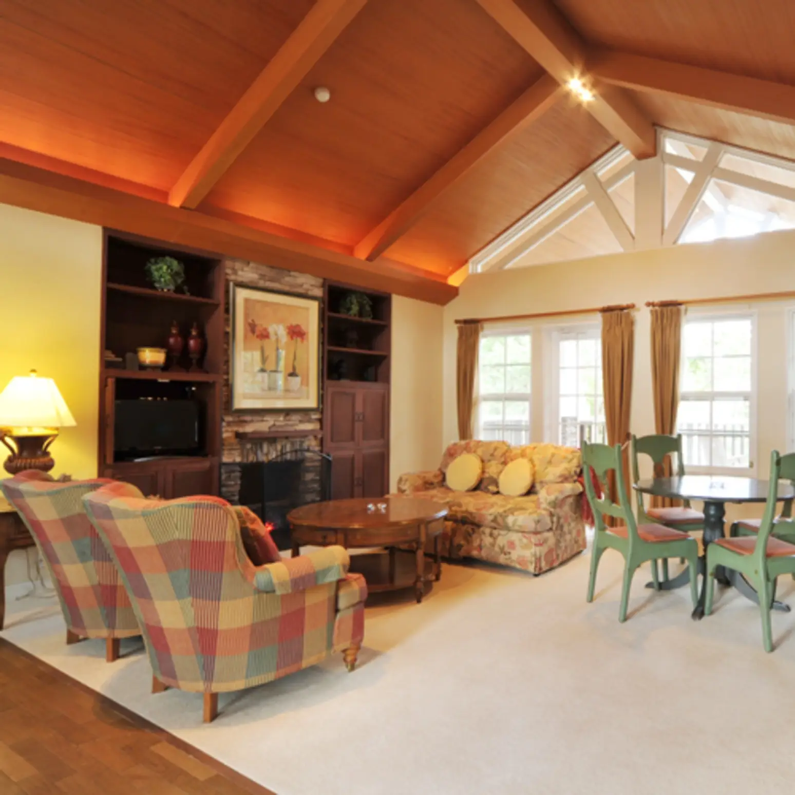 木のぬくもりと、懐かしい音楽がゆったりと流れています。