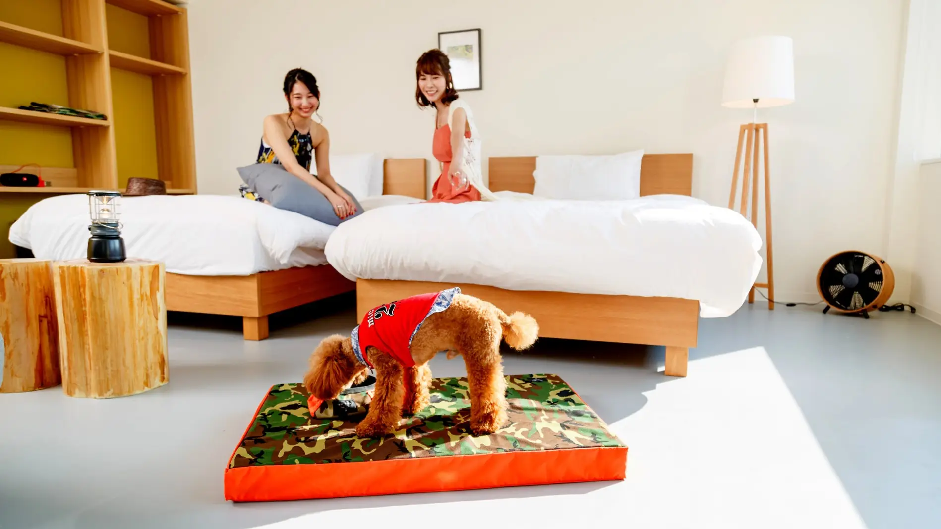 テラスはもちろんベッドルームを含めキャビン内のどこでも愛犬と一緒に過ごせます。