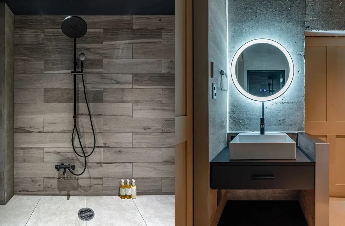 大小ふたつのヘッドがついたシャワールームは愛犬と一緒にお入りいただけます。