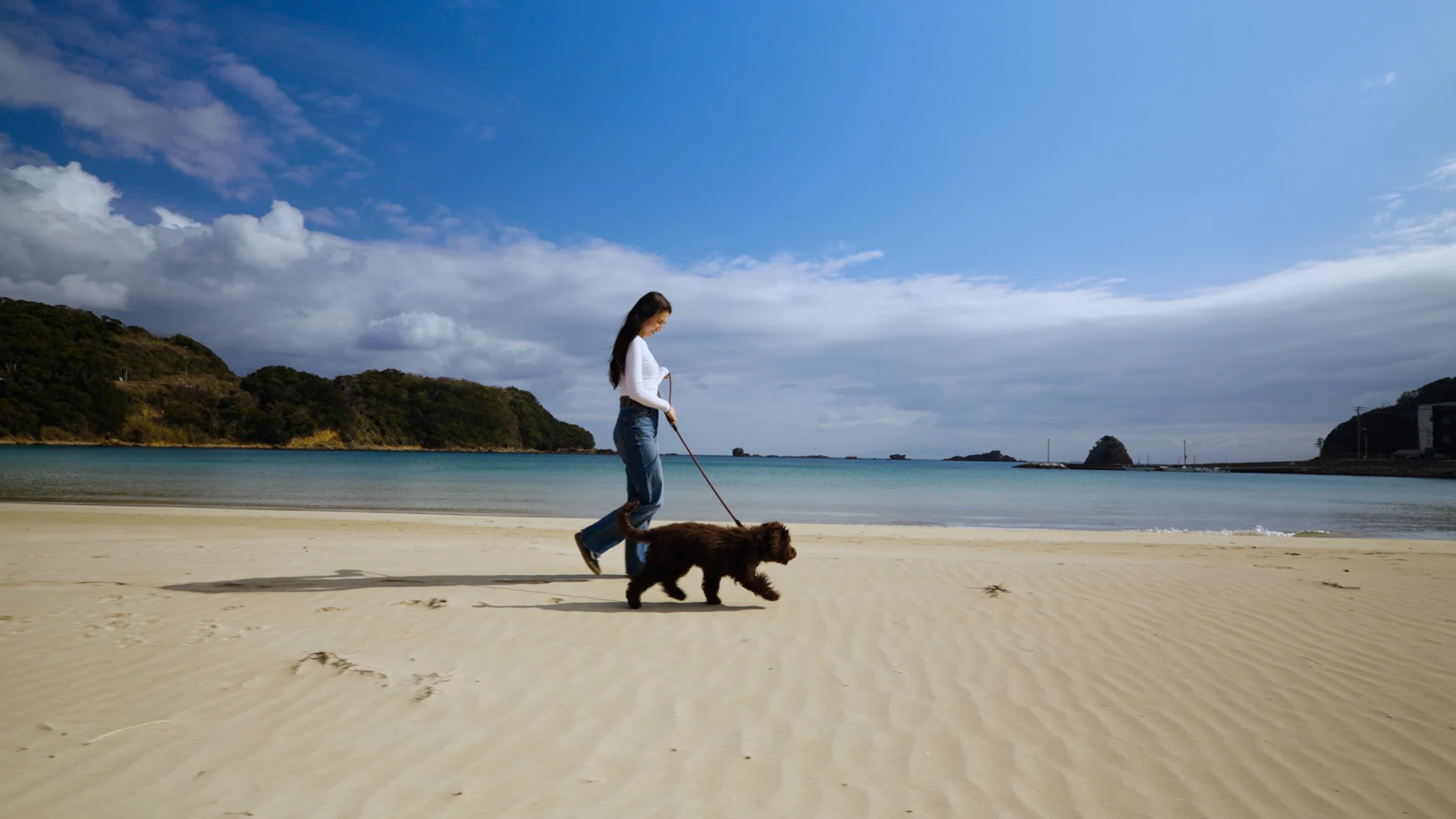 天然のドッグラン・外浦海岸でわんちゃんと砂浜で戯れたり、お部屋でのんびり過ごせます。