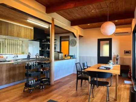広いリビングと開放的なオープンキッチンを備え、持込食材のお料理も可能です。