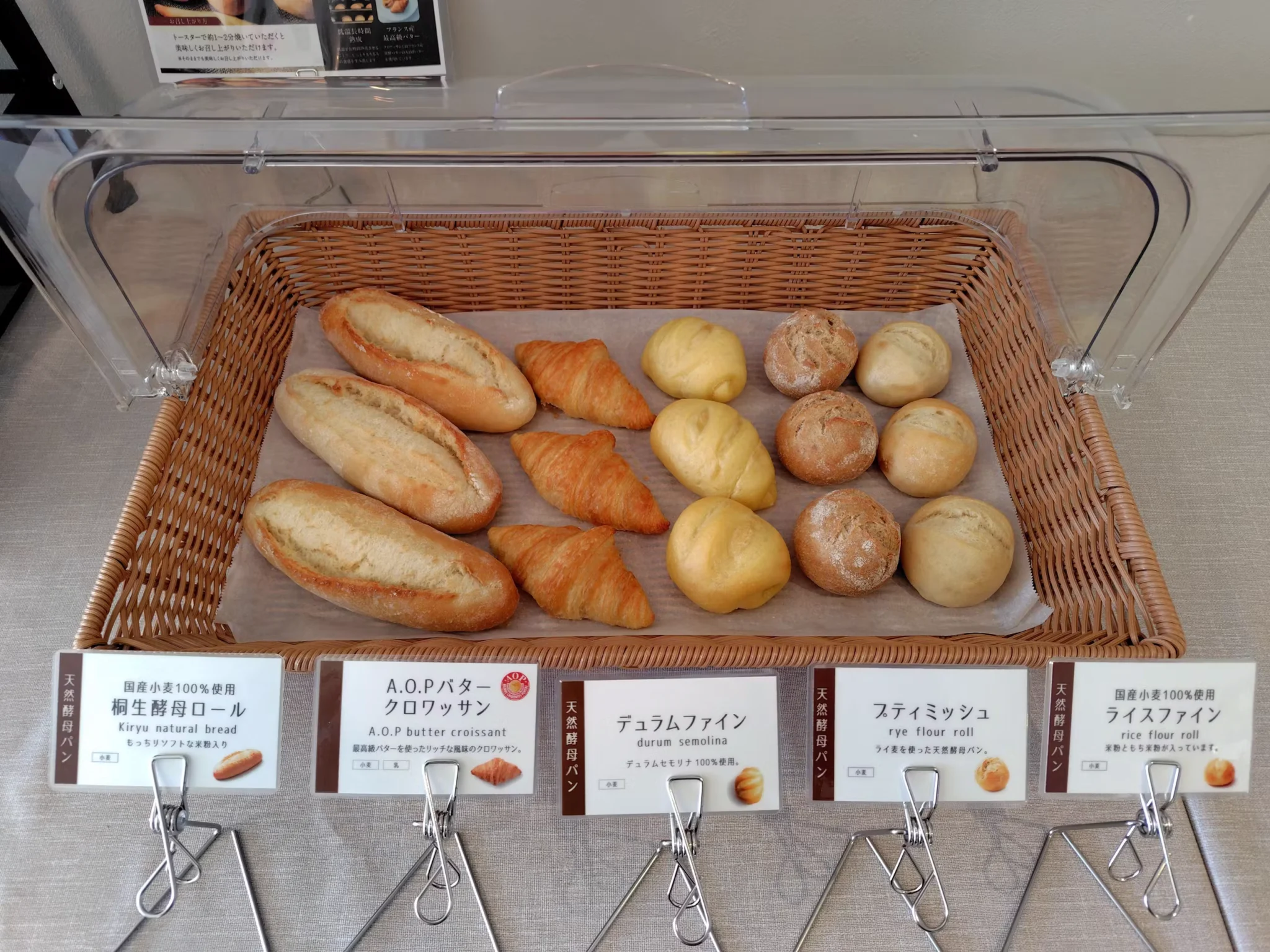 ラウンジコーナーにセルフサービスのパン5種類(日替わり)とジュース、地元産の牛乳などをご用意しておりますので、客室やテラススペース(冬季閉鎖)でゆっくりとお召し上がりください。