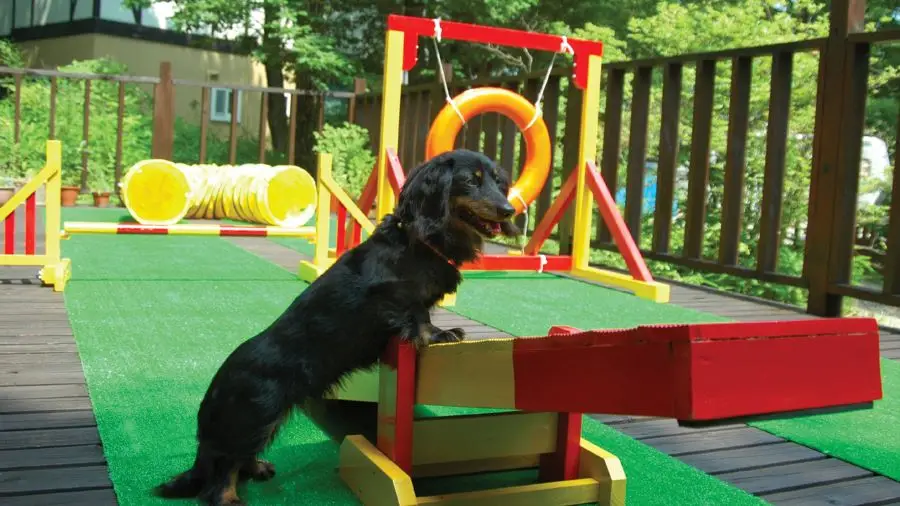 デッキテラスに設けられたアジリティ広場は大人気!
