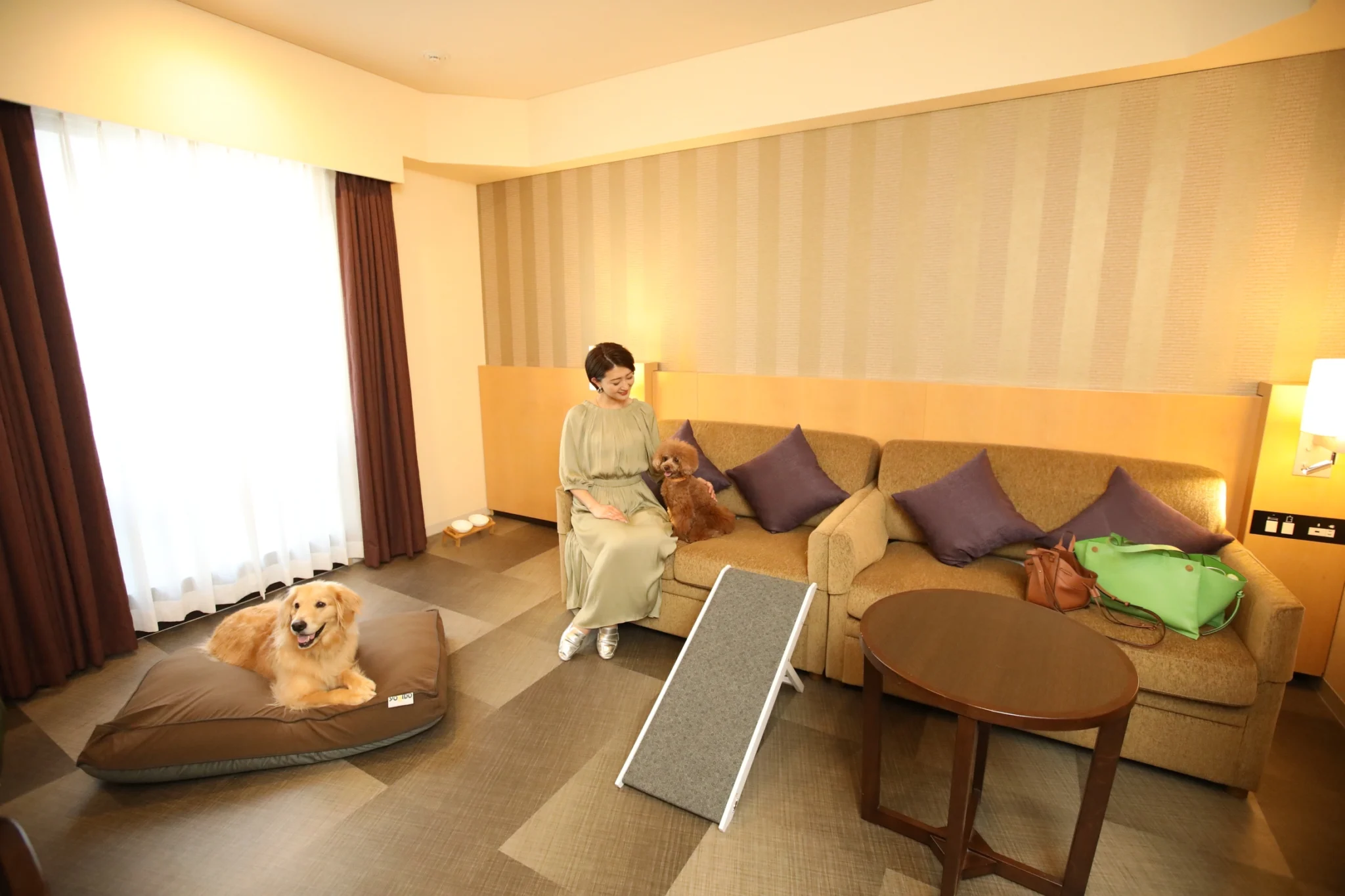 (1)1室につき2頭までお連れいただけます。 (体重40kg未満で、生後4か月以上の闘犬を目的としていない犬種に限ります。)予約時に犬種と頭数をお知らせください。