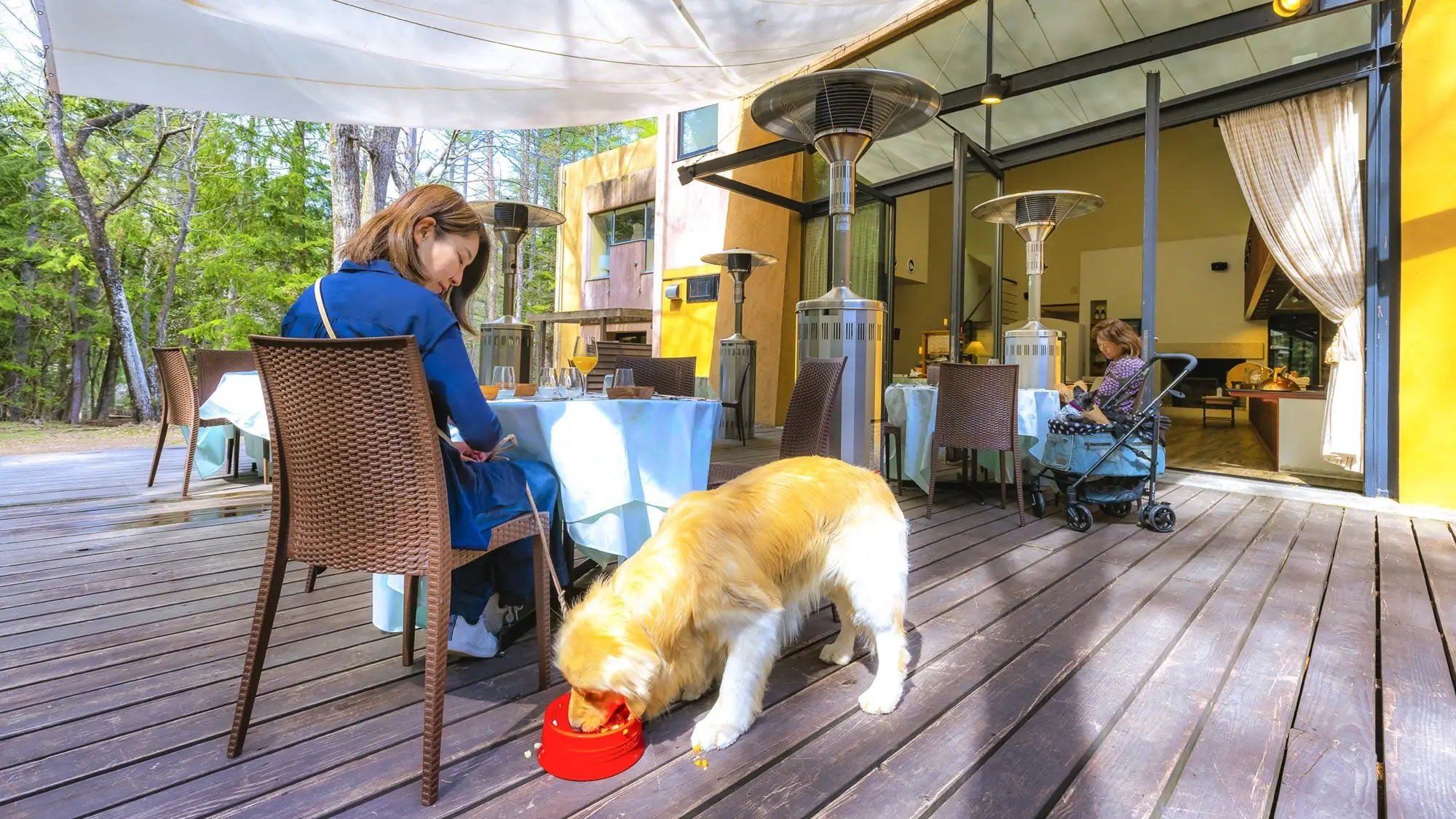 (3)お食事の際、わんちゃんは同伴いただけます【ホール席orテラス席のご案内(好天時限定)】ただし、わんちゃんのお食事・リードはご持参ください。