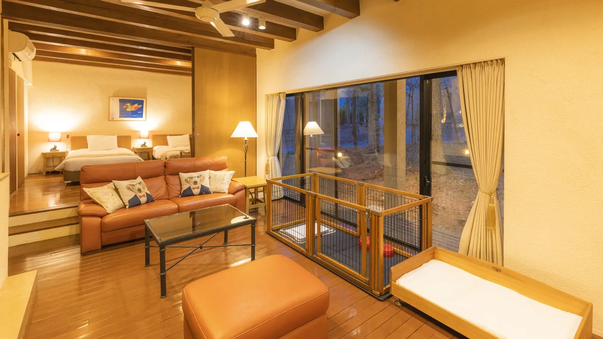 - わん宿・わんスイート・わんヴィレッジでご予約いただければ、お部屋で一緒にお泊りいただけます。 その他のお部屋は同伴不可となります。