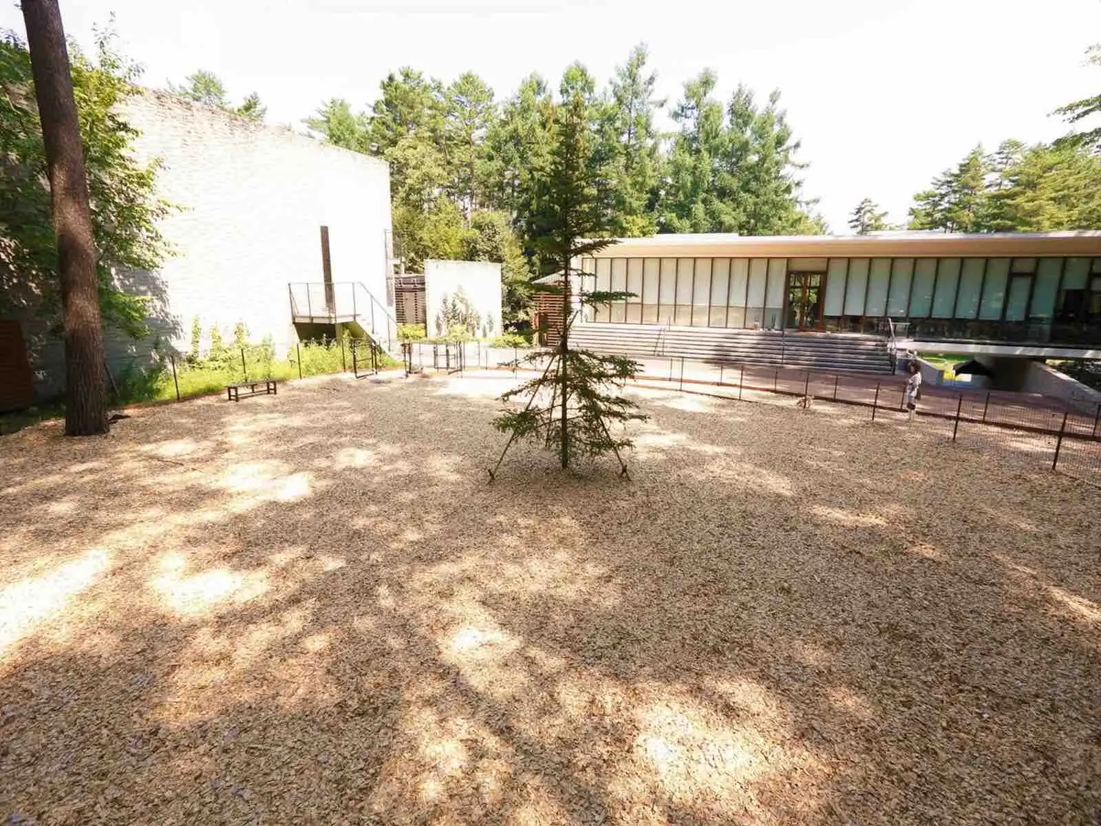 400平米、ヒノキのウッドチップが敷かれた円形のドッグランです。
