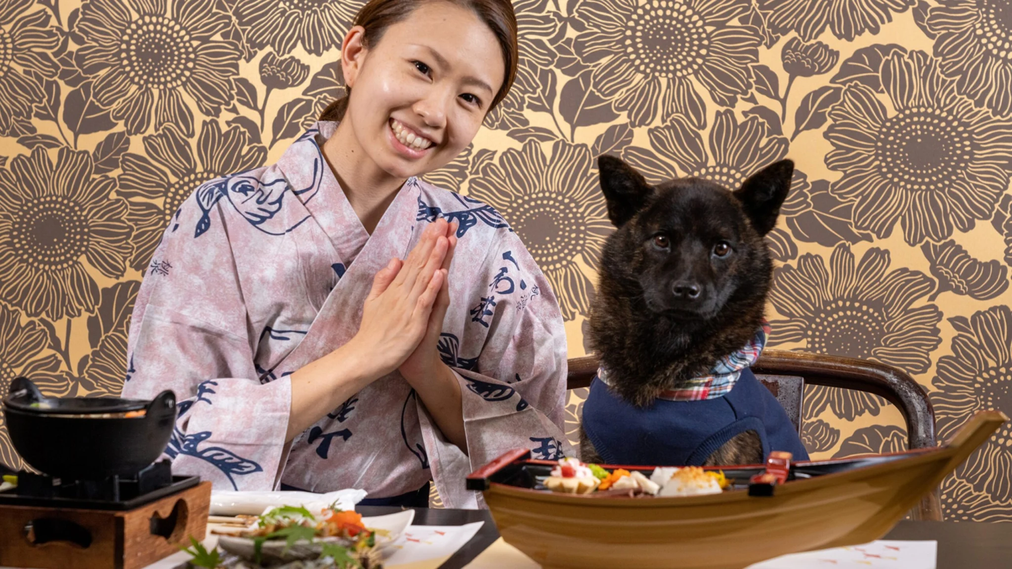 お部屋、食事、温泉とどこでも愛犬と一緒に過ごすことのできる湯宿です。