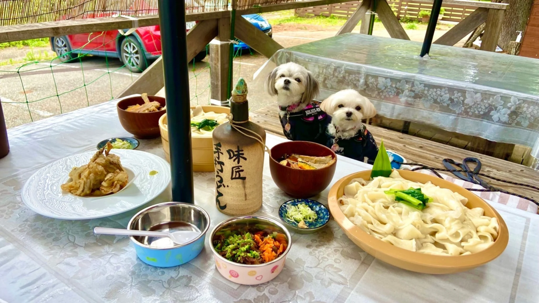 愛犬同伴OKのレストランにて、わんちゃん用のお食事もご用意しております。(ほぐしささみ、馬肉ステーキなど)